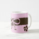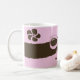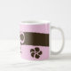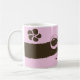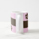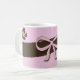 This mug features a cafe brown stripe* flowers on a pink background. All tied up with a big pink bow.
