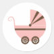 Cute pink and brown baby buggy, which match the "Paisley & Buggy Baby Shower Invitation".