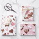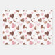 Pink Brown Cocoa Cow Print Hearts Birthday Wrapping Paper Sheet