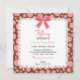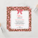 A sweet lace border frame and a fun polka-dot background pattern adorned with a darling little bow make up this Sweet 16 birthday party invitation.