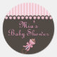 This modern customisable Baby Shower sticker features a pink rattle on a pink & brown striped background. Customise it by adding your details in the font of your choice!