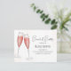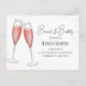 This design features a watercolor brunch and bubbly bride, a bridal shower wine champagne drinks, a QR code gift registry store, a website URL scannable scan online, a pink simple minimalist minimal design, a trendy stylish calligraphy script font, a champagne flute glass toast bar, a whimsical typography text style, for her bride to be, a budget-friendly bridal shower postcard