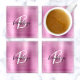 Pink Brushed Metal Black White Script Monogram Glass Coaster