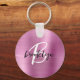 Pink Brushed Metal Black White Script Monogram Key Ring