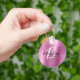 This elegant personalised keychain features a monogram and first name in modern black and white script on a pink brushed metal background.