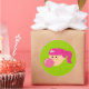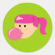 This cute bubblegum girl illustration features an adorable pierced punk girl with hot pink hair blowing a big bubble with her bubble gum! This retro inspired candy art is the perfect gift to buy for anyone who loves fun and original cartoon artwork!