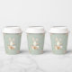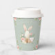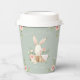 Cute watercolor baby bunny rabbit in a wicker basket surrounded by beautiful pastel coloured flowers on the front and back of this paper cup. Sage green background. Perfect for that little girls first birthday party. Elegant & sweet. Matching products available. 100% customer satisfaction with “Zazzle”