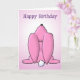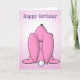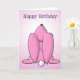 A cute cartoon of a pink bunny with the words Happy Birthday above it. Perfect for that little girl in your life. Matching postage stamp available.