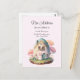 Postcard moving announcement with an adorable image with a round shaped bunny standing outside it's egg-shaped house. Pastel colours and cherry trees give it a Japanese kawaii vibe.