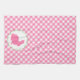 The silhouette of a cute pink bunny sits inside a white flower frame with a spring green border. Sweet, pink and white gingham checks make up the background.