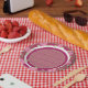 Decorative patterned everyday paper plates in pink, rose, burgundy and green, all elements are removable, two sizes to choose from..