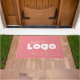 Medium Blush Pink Business Welcome Mat Company Logo Doormat — Add your own professional logo graphic to this welcome mat template easily. No minimums or setup fees. Background is a pastel dusty rose light baby pink colour