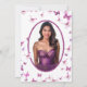 This pretty pink 18th birthday debut invitation has butterflies, a pink glitter dress, and a custom photo on the back with a personalizable template to create your own invitation. The template is customizable in the listing editor and is also available as a digital download that's printable after you personalize it. The butterflies give it a light and airy feel that's perfect for a young woman's milestone birthday celebration.