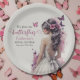 This romantic and whimsical design is ideal for the pretty bride who dreams of a day filled with magic and beauty. The beautiful bride in a wedding gown adorned with dainty bows and intricate floral patterns surrounded by butterflies in shades of pink and purple reflects the fairy-tale ambiance of a pink butterfly-themed shower.