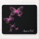 Pink Butterflies On Black Mouse Pad