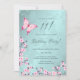 Pink Butterfly Cherry Blossom Turquoise Invitation