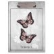 Jot down notes and reminders on a secure surface with a Pink Butterfly Floral Personalised Clipboard. Clipboard design features a pair of vibrant butterflies resting on a white floral vine against a light grey grunge background. Additional gift items available with this design as well as a variety of colours.