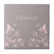 Sweet and dainty Butterfly Floral Tile with a muted dusty grey background and light pink butterflies and floral vine embellishments. This elegant floral tile would complement any decor! Easy to customise, simply add the personalised text of your choosing in the text fields provided. Click on the "Customise It" button to find additional personalisation options.