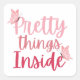 Elevate the unboxing experience with our enchanting "Pink Butterfly Pretty Things Inside" square sticker. This delicate and vibrant sticker is not just an adornment; it's a promise of something beautiful within.
