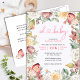 Pink Butterfly Rose Floral Green Girl Baby Shower Invitation Postcard
