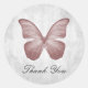 Elegant and simple Wedding thank you sticker featuring a pink butterfly against a grey grunge background. This design is a unique choice for a modern wedding. Easy to customise with your wedding details. Click "Customise It" to find more personalisation options.