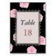 Pink Cabbage Roses and Black Lace Wedding Table Number