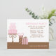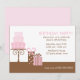Simple, modern and chic birthday party invitations feature a cute vector illustration of a blue cake and presents.