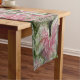 Dress up a table with this colourful, cotton cloth table runner that features a repeating photo image of variegated, pink Caladium leaves, commonly known as Heart of Jesus, Angel Wings, and Elephant Ear. A lovely, floral design! Select your table runner size. NOTE: Image optimised for small and medium sizes only.