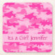 Pink Camo Camouflage Its a Girl Name Square Paper Coaster