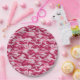 These girly camo plates feature a camouflage pattern in shades of dark pink and pale pink.