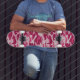These girly camo skateboard feature a camouflage pattern in shades of dark pink and pale pink.