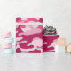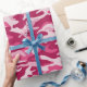 These girly camo wrapping paper feature a camouflage pattern in shades of dark pink and pale pink.