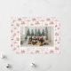 Holiday card featuring a cute pastel pink and green wallpaper background with one family photo paired with a holiday greeting and your name and year in a sans serif font.