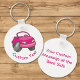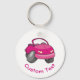 Pink toy cartoon car. Custom background color. Custom text on both sides.