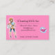 Pink Cartoon Girl House Cleaning Service Business Card