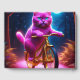 Pink Cat On A Golden Bicycle Scenic Path Stars And Moon In Background