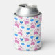 Pink Cat Paw Blue Hearts Meow Pattern Can Cooler