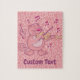 Handrawn pink cat cartoon playing the violin. Custom text.