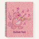 Handrawn pink cat cartoon playing the violin. Custom text.
