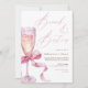 Featuring a watercolor pink bubbly glass wrapped in a satin ribbon, this design is perfect for stylish gatherings, brunch dates, and girls-only celebrations.