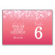 Decorate your wedding tables with these beautiful double-sided champagne bubbles effect wedding table number cards in pink and white. A great idea to help guests find their seats at a bubbly pink champagne sparkling wedding or pink champagne event. Personalise with your own bride and grooms name and wedding date. You must change the number to each number that you need and add them each your cart, one at a time. If you have any questions or need help or other wedding items in this style please contact me. This simple design would also work well to add table numbers to any special function or champagne sit down fine dinning dinner. Original graphic sparkling champagne bubbles effect by Sarah Trett.