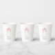 Festive and elegant bridal shower paper cup features a pair of clinking champagne glasses in watercolor, filled with pink bubbly. Personalise with your event name in chic grey lettering.