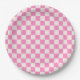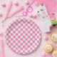 Pink Check, Chequerboard Pattern, Chequered Paper Plate