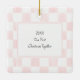 This Christmas ornament is ready to be customized with your own photo and your own custom caption. Your photo and caption are set inside of a pink and white frame against a pink and white checkerboard background. There's a spot to add an additional message on the reverse side. Pastel pink squares with a painted look and plain white squares are arranged in an alternating pattern on the front and back of this ornament.