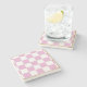 Complete your kitchen aesthetic with this set of two matching coasters, featuring a charming pink and white chequerboard pattern bordered in a soft gold trim. Perfect for adding a touch of elegance to your coffee table, desk, or breakfast nook, these coasters protect surfaces while keeping your style effortlessly coordinated.