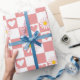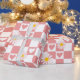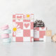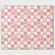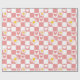 Wrapping paper featuring pink checks with daisies and hearts; perfect for wrapping children’s birthday gifts, baby showers, Valentine’s Day, and gifts for someone special in your life.