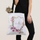 Pink Cherry Blossom Floral Initial Name Monogram Tote Bag