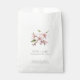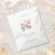 This elegant wedding favour bag features a delicate hand-painted style blush flower branch centred on a crisp white background. The bag displays the couple’s names and wedding date in refined serif type below the floral artwork, with a thank you message in a classic, understated font at the bottom. The clean, minimalist layout and soft botanical motif lend a romantic and contemporary touch to your celebration. Ideal for packaging sweet treats, small gifts, or mementos, this favour bag adds a thoughtful, sophisticated accent to any wedding reception or bridal event.