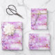 Wrapping paper sheets with a beautiful photograph featuring pink cherry blossoms. Dreamy image with bokeh lights and sparkles.