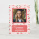 Celebrate your graduate with this personalised graduation card featuring a cute fun pink cherry pattern background and a custom photo placeholder. Perfect for high school, college, or any graduation celebration, this cute and trendy design adds a sweet touch to your congrats message. Easily customise with your own text and image.